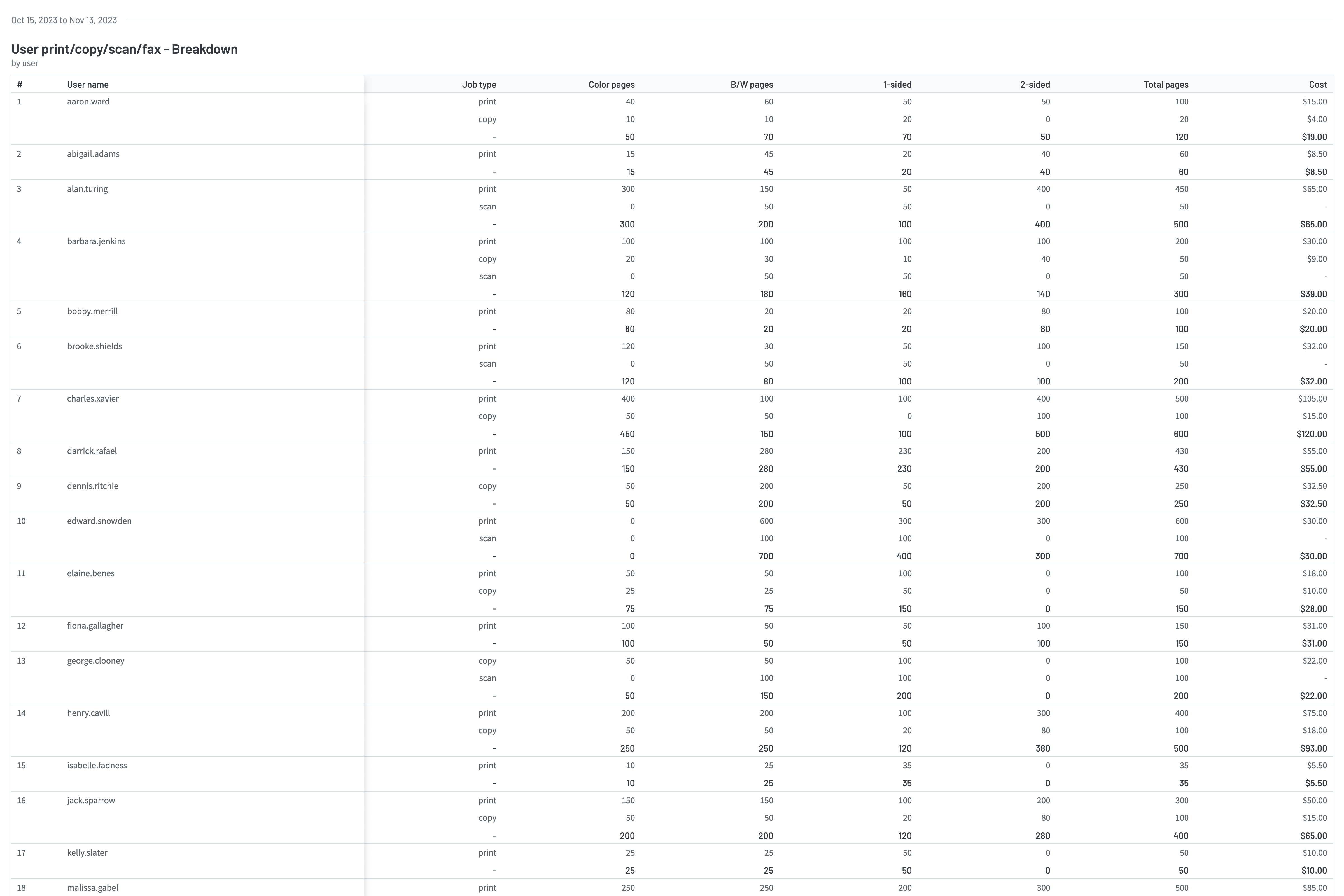 User Activity Summary Understand what your users are up to with their printing (or copying, scanning, or faxing).